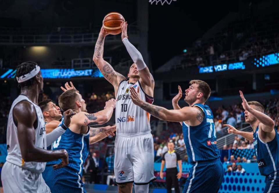 在此前的一场男篮欧锦赛比赛中,德国队在比赛最后一节完成了逆转,以99比91有惊无险地战胜了斯洛文尼亚队,顺利晋级4强。本场比赛后,德国队将会与战胜了格鲁吉亚队的芬兰队争夺一个决赛的席位;而斯洛文尼亚队则是有些遗憾地被淘汰出局。