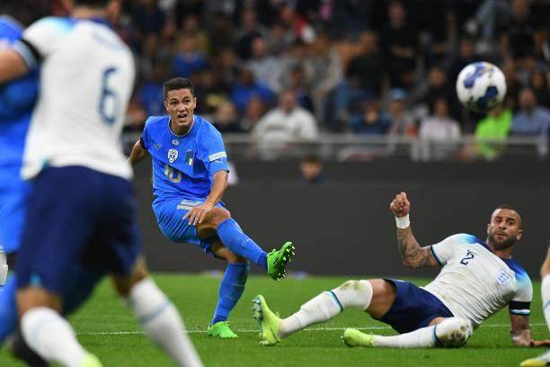 拉斯帕多里身高也是在1.7米左右,并且左右脚均衡,是自己都分不清主力脚的程度。比起联赛中的两个进球,今天面对英格兰的禁区线弧线球堪称完美,如果配上那不勒斯的球衣,还真有点因西涅的意思。