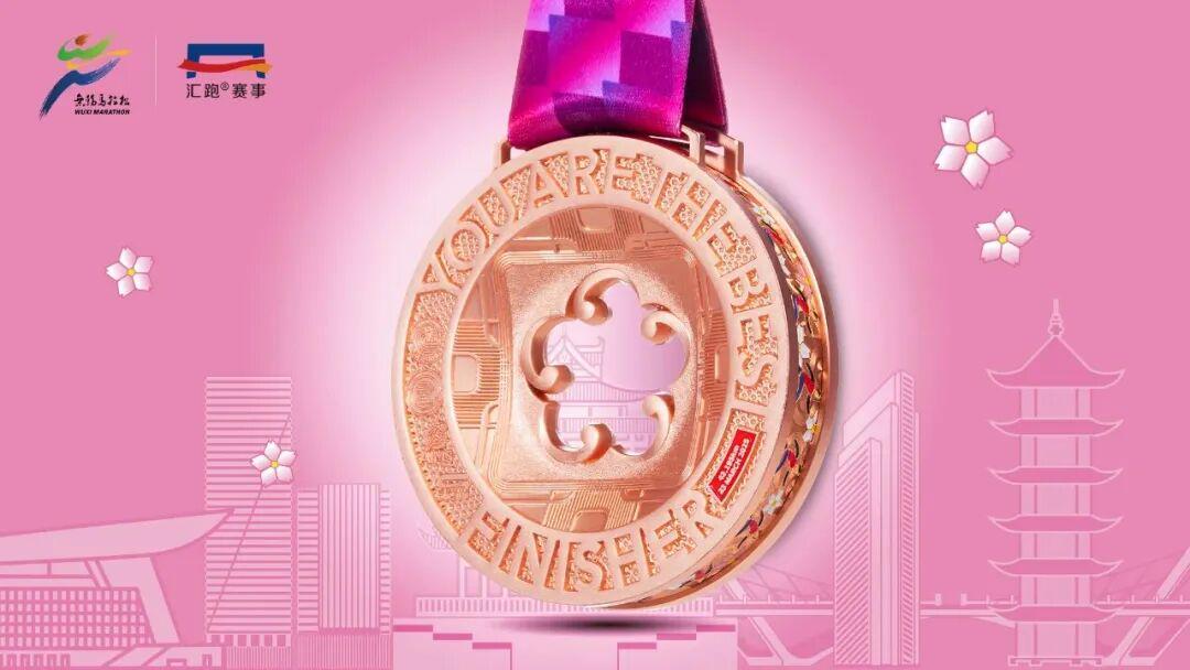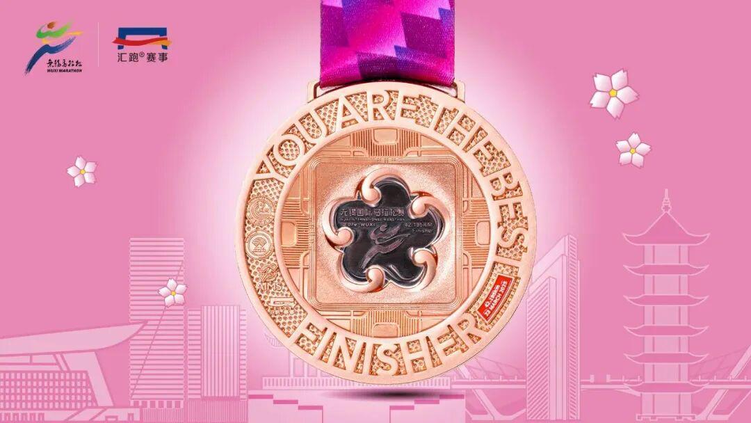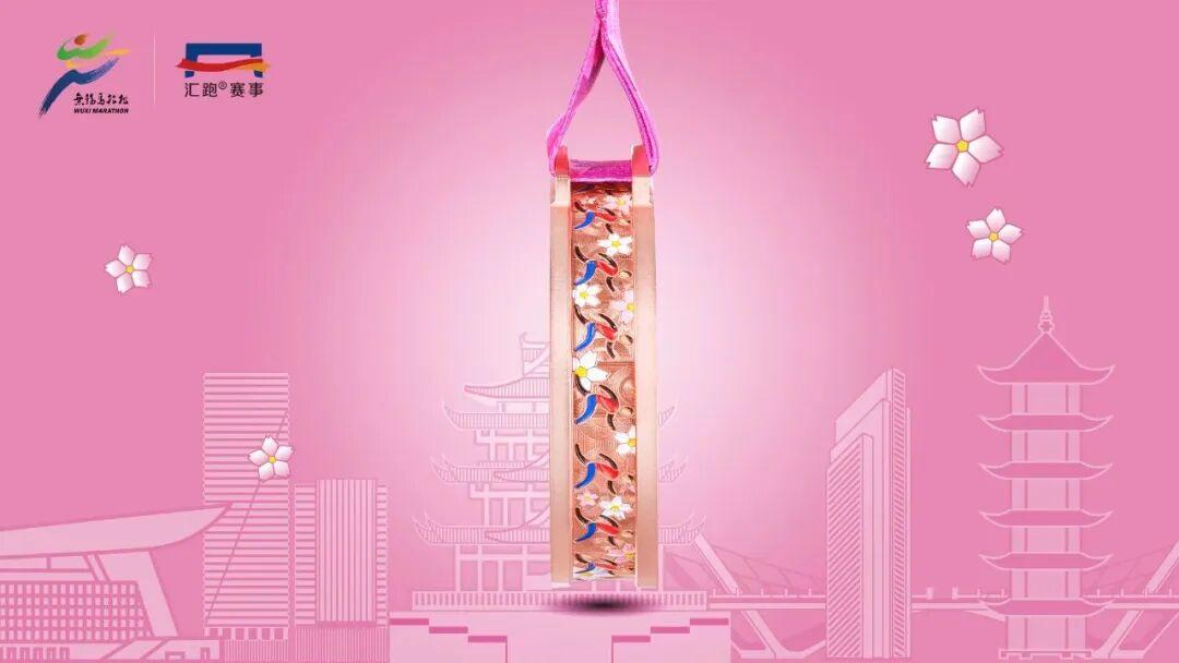 五瓣梅花寓意对来自五湖四海的跑者们的欢迎,斜面的竹节浮雕融入了江南水乡的雅致格调。奖牌侧面则是加入了跑者、樱花等元素,强化了锡马的视觉符号。