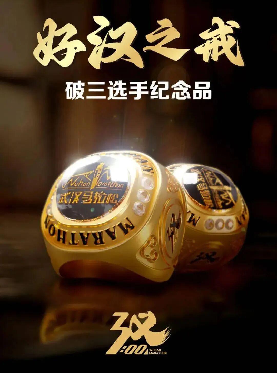 同样的,为了鼓励破三的跑者,汉马为所有破三的选手准备了破三礼物-好汉之戒。纯铜材质,黑金搭配,装点有汉马的Logo和破三的徽标,古朴中有点“江湖之气”。